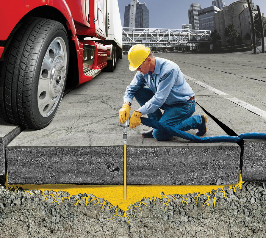 Однією з передових технологій, яку застосовується для ремонту бетонних доріг, є геополімерне ін'єктування. Цей метод передбачає введення спеціальних геополімерних смол під бетонне покриття через невеликі отвори діаметром 12–16 мм. Смоли розширюються, заповнюючи пустоти та ущільнюючи ґрунт, що дозволяє: